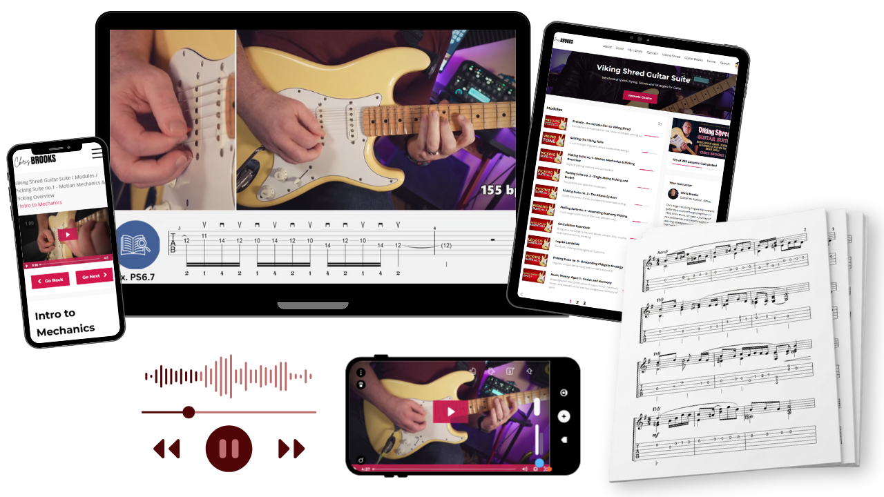 Hi, I'm Chris Brooks, author of 18 chart-topping guitar method books, including Neoclassical Speed Strategies, the book that helped tens of thousands of guitarists level-up & break through technique barriers.